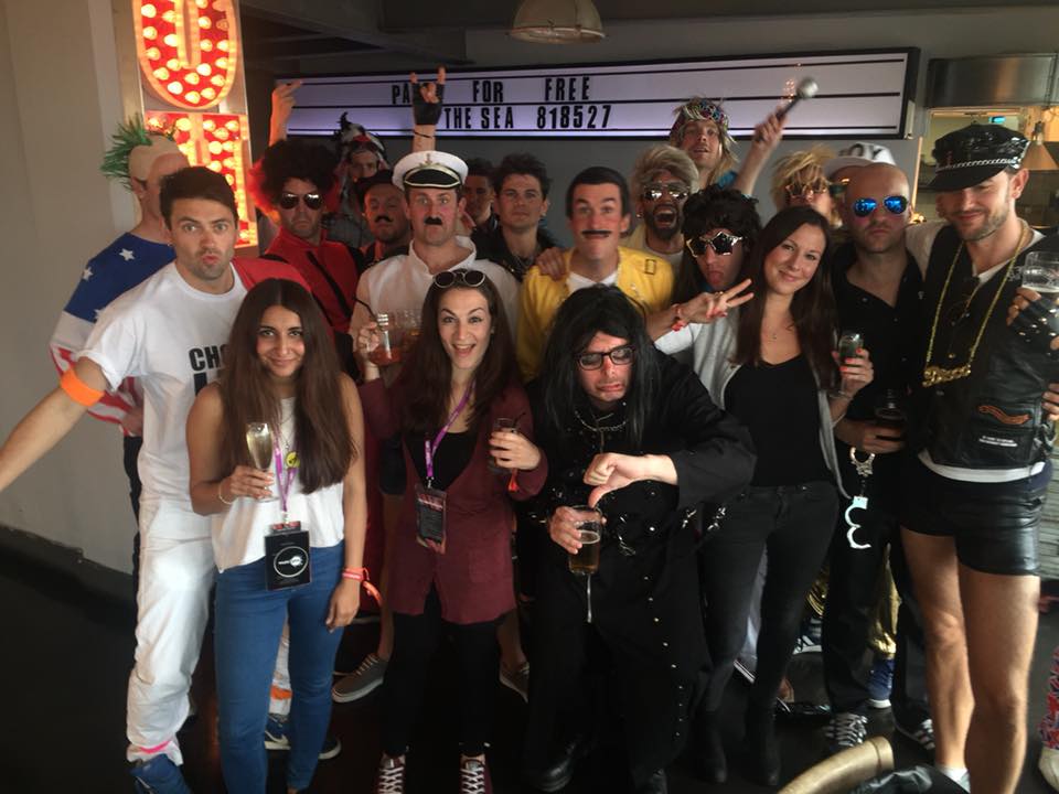 Hanging at one of the most fun brunches, on one of my most terrible hangovers and having a photo with a hilariously dressed stag do across the bar.